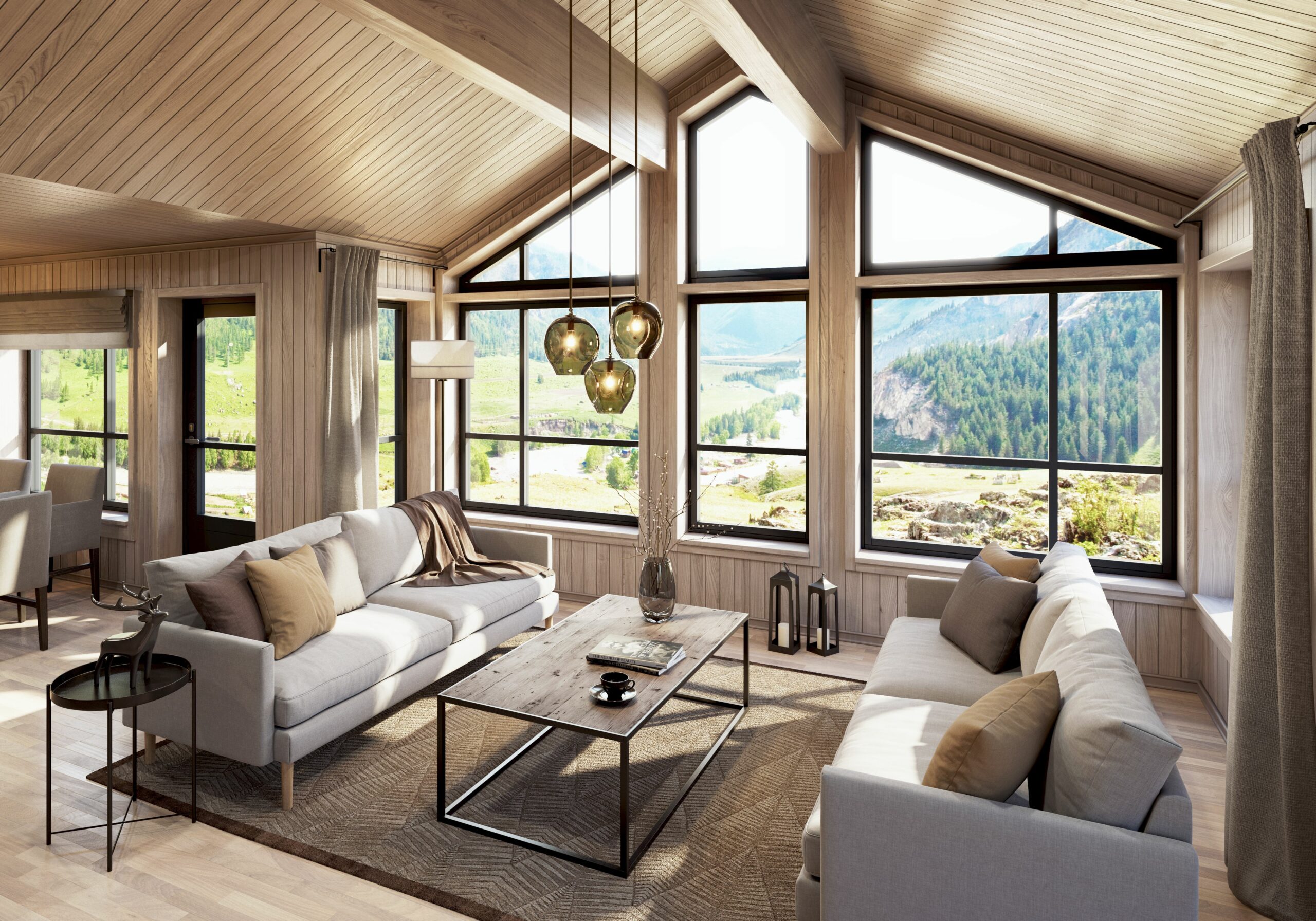 Byggesettet leveres på tomten og våre snekre gjør den ferdig utvendig og nødvendige innvendige bæringer i tre.