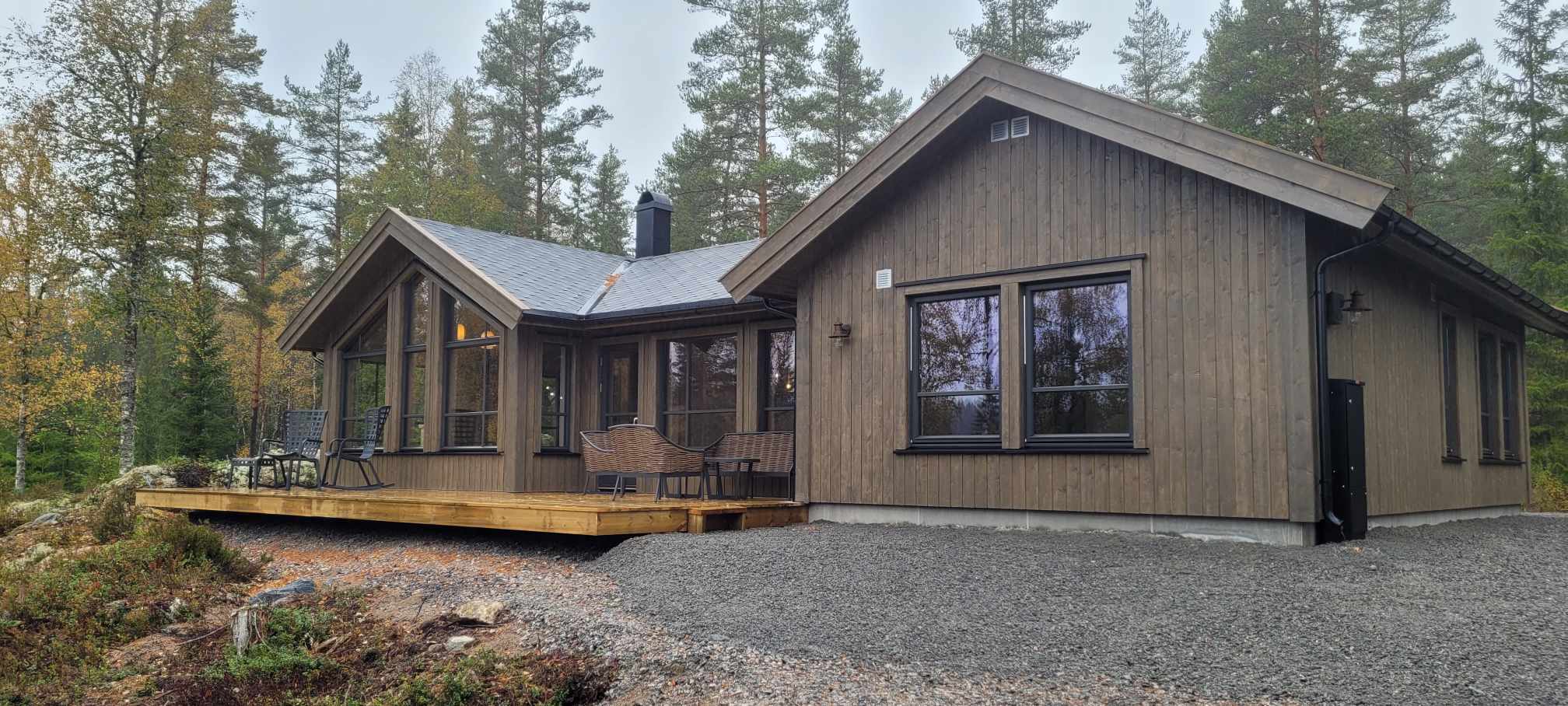 Nøkkelferdig leveres hytten klar til innflytting i henholdt til leveransebeskrivelse. Det er medtatt snekker for hele prosjektet, rørlegger, elektriker, legging av parkett, flis og kjøkken. Her er det bare til å ta med seg møbler og flytte inn.