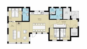 H Hytte Heimdall 141 – Type Kongsvold, er en variant med oppstuggu er den perfekte drømmehytta for deg som ønsker å kombinere funksjonalitet og sjarm i ett. Med en effektiv planløsning og en romslig spisestue og kjøkkenområde, utgjør denne hytta hjertet i ditt fremtidige fristed.