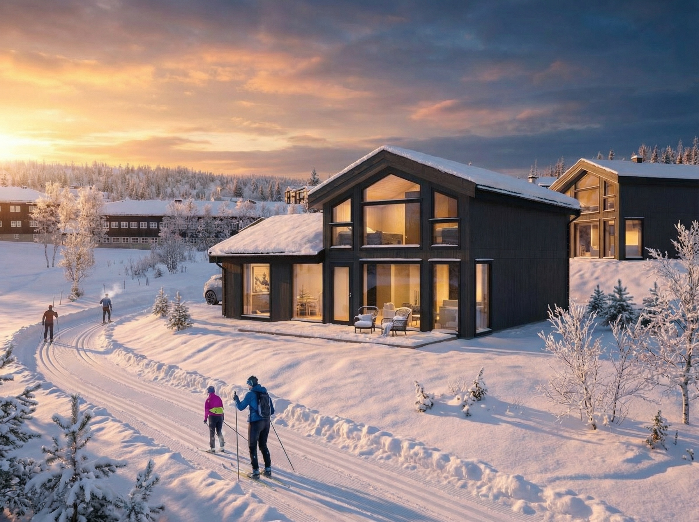 Her får du en moderne høystandard fritidsbolig tuftet på solide gamle tradisjoner. Det er lagt stor vekt på gode planløsninger, gjennomtenkt interiør, store vindusflater og vestvendte uteplasser med panoramautsikt over Hemsedalsfjella, Vang og Jotunheimen.