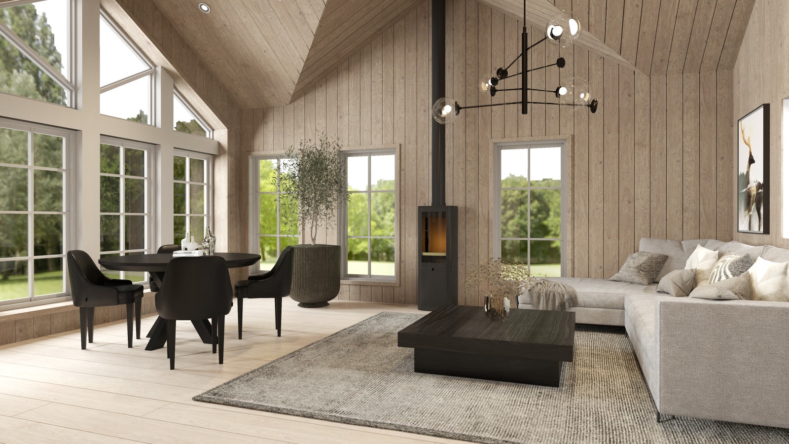 – Ferdigbehandlet innvendig listverk i samme utførelse som panel, vinduer, dører, gulv og tak.